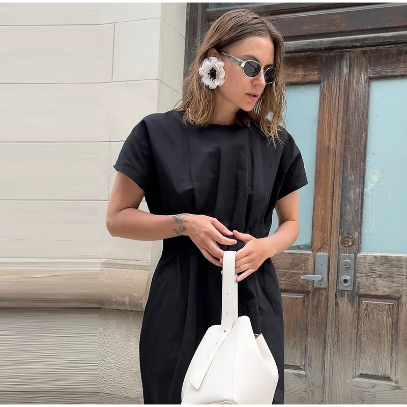 Um vestido versátil que pode ser usado com sandálias para o dia a dia ou combinado com salto e acessórios para um look mais refinado.